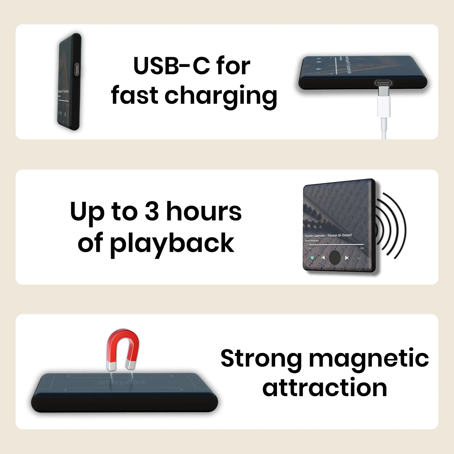 With a built-in Surah player, one-click operation, and a sleek, magnetic design, it brings the beauty of the Quran into your daily life effortlessly. Whether you're cooking, relaxing, or teaching your children, Quran Magnet makes listening to the words of Allah simple and accessible anytime, anywhere.